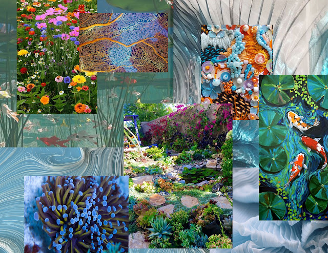 Now that it's week two of this process, I have been spending a lot of time finalizing my sketches, working on my color story, and I have also been considering which fabrics will be the best choice for my designs. I have developed some of my sketches a bit more, and we also have been working on choosing three words that sort of embody our collection. I had chosen "opulent, evident, and ethereal," but upon some feedback from class today, I am thinking of changing the word "evident." I also have a more finalized version of my mood board to share, as well as some of my sketches.